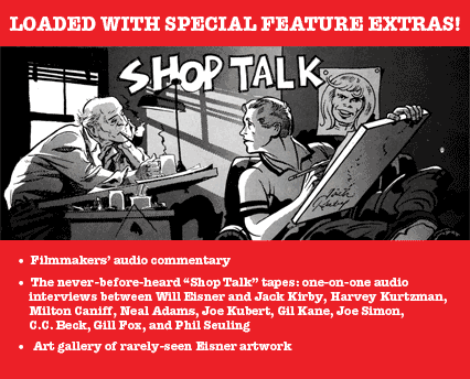 The award-winning full-length feature film documentary includes interviews with Eisner and many of the foremost creative talents in the U.S., including Kurt Vonnegut, Michael Chabon, Jules Feiffer, Jack Kirby, Art Spiegelman, Frank Miller, Stan Lee, Gil Kane, and others.